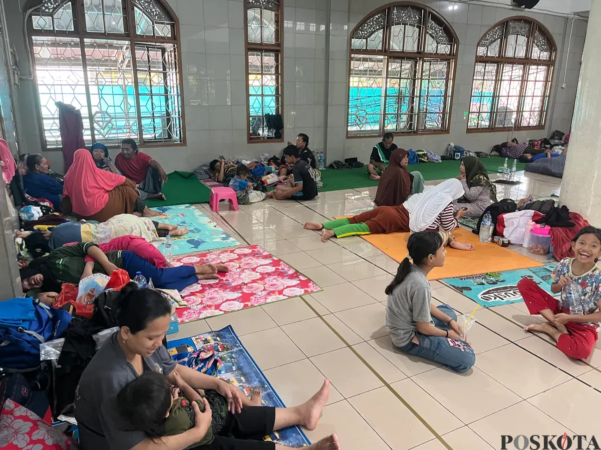 Kondisi warga RW 01 Kelurahan Rawa Buaya, Cengkareng, Jakarta Barat, yang mengungsi di Masjid Jami Baitul Rahman, Sabtu, 24 Januari 2026. (Sumber: Poskota/Pandi Ramedhan)