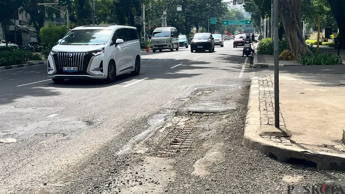 Jalan rusak di Kebon Sirih, Jakarta Pusat. Minggu, 25 Januari 2026. (Sumber: Poskota/M Tegar Jihad)