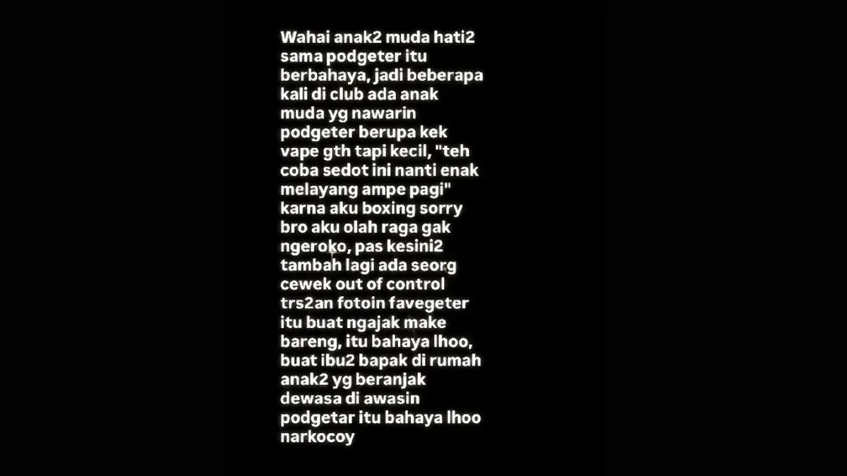 Dinar juga menyinggung pengalamannya melihat seseorang yang kehilangan kendali setelah menggunakan podgeter, bahkan mengajak orang lain untuk ikut mencobanya.