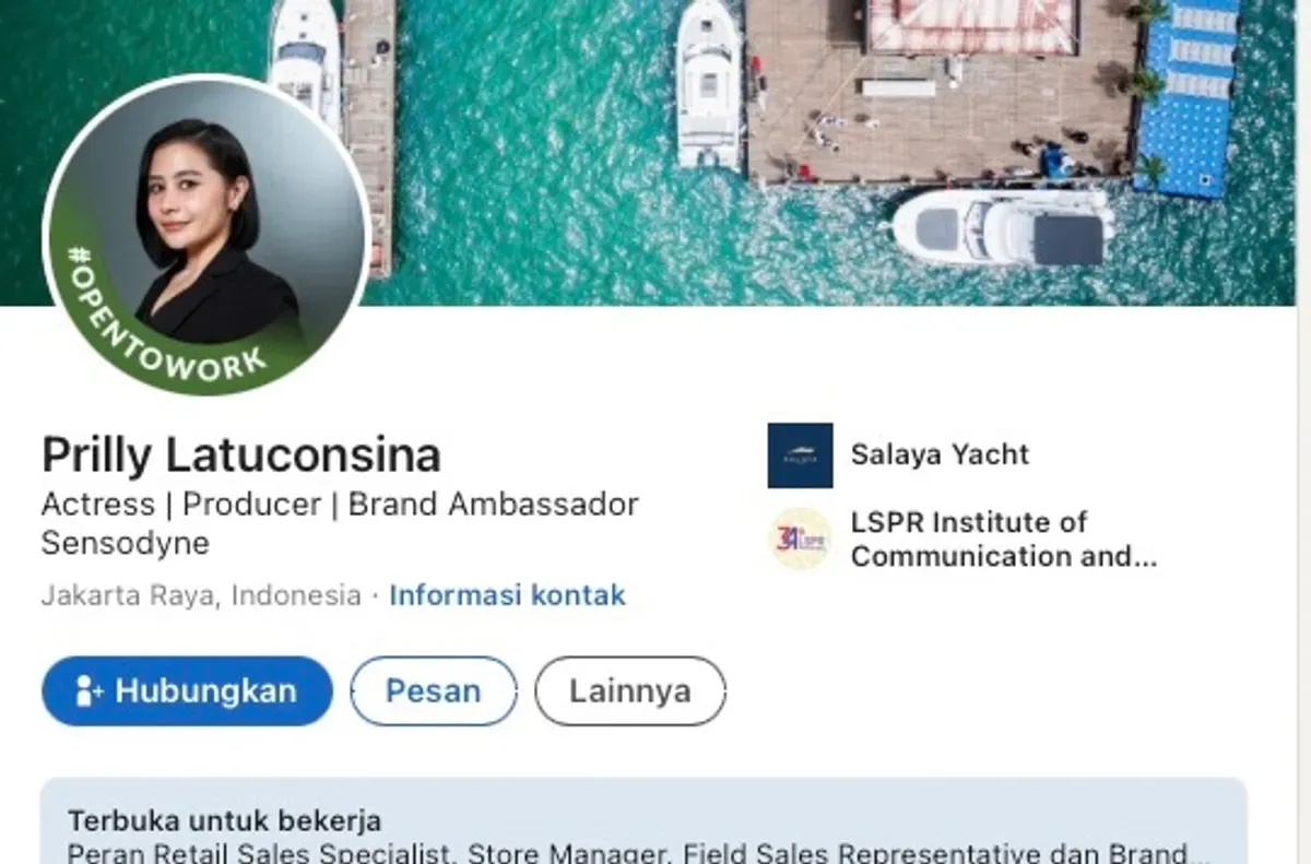 POSKOTA.CO.ID - Prilly Latuconsina secara mengejutkan sedang mencari pekerjaan alias Open to Work di Linkedin. Pemeran sinetron Ganteng-Ganteng Serigala itu terlihat mengaktifkan badge tersebut.