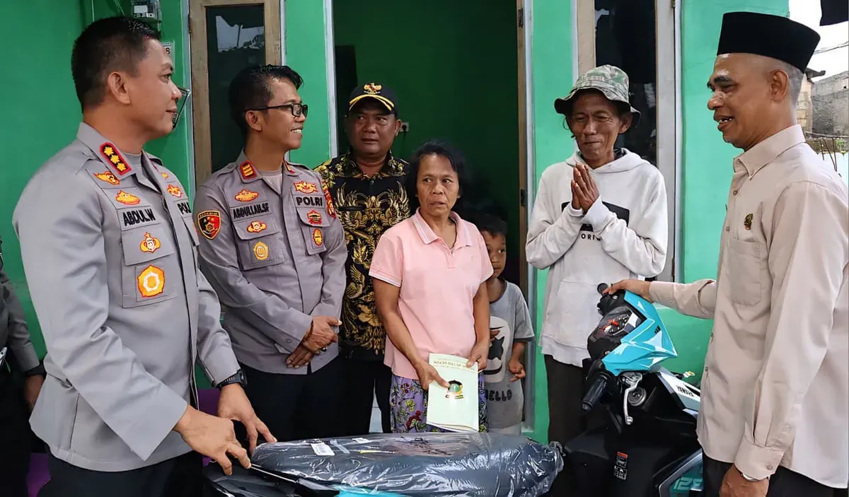 Selain motor, Kapolres Metro Depok juga memberikan bantuan uang tunai untuk mendukung usaha Sudrajat.
