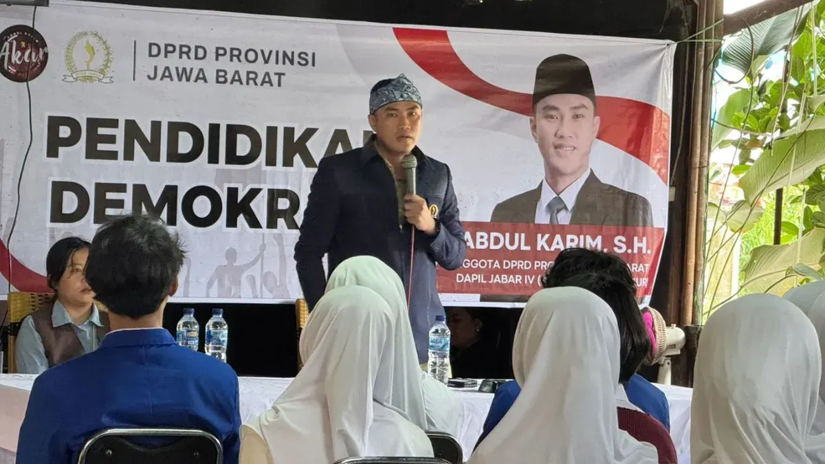 CIANJUR, POSKOTA.CO.ID - Anggota DPRD Jawa Barat, Abdul Karim menggelar kegiatan Pendidikan Demokrasi bagi pelajar gabungan di Kabupaten Cianjur. Kegiatan tersebut berlangsung di Cafe Teh Sari, Desa Nagrak, Kecamatan Cianjur, Kabupaten Cianjur, dan diikuti antusiasme para pelajar.