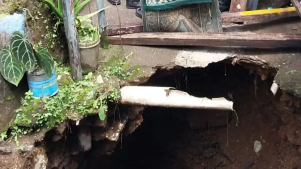 BOGOR, POSKOTA.CO.ID - Tanah di Desa Tugu Selatan, Kecamatan Cisarua, Kabupaten Bogor, ambles, Senin, 26 Januari 2026, sekitar pukul 08.00 WIB.