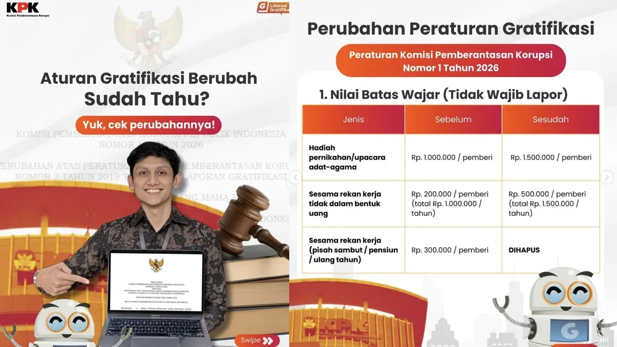 KPK resmi menerbitkan Peraturan Nomor 1 Tahun 2026 tentang perubahan pelaporan gratifikasi. (Sumber: Instagram/@official.kpk)