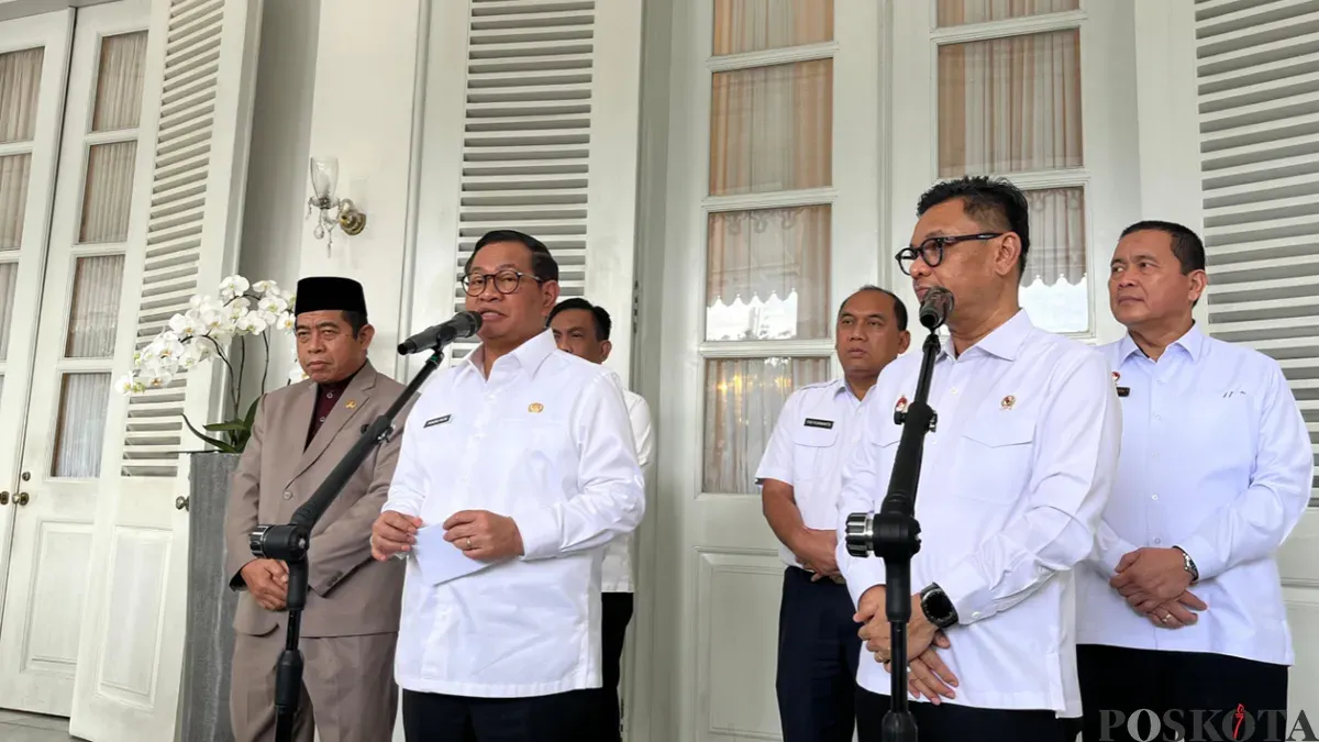 Gubernur DKI Jakarta, Pramono Anung saat menyampaikan pernyataan kepada awak media di Balai Kota Jakarta, Rabu, 28 Januari 2026. (Sumber: Poskota/M. Tegar Jihad)