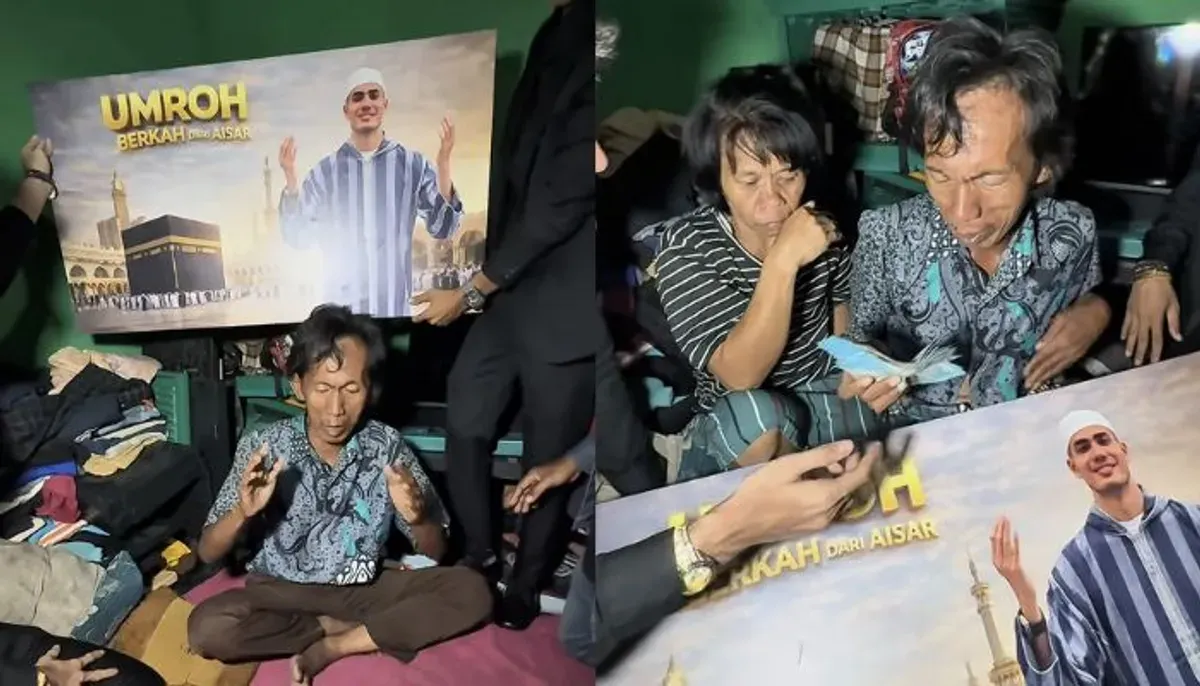 Melihat kondisi tersebut, Aisar Khaleed turun langsung mendatangi kediaman Suderajat di Bojonggede, Kabupaten Bogor, dan memberikan hadiah yang tak pernah terbayangkan sebelumnya: kesempatan menunaikan ibadah umrah.