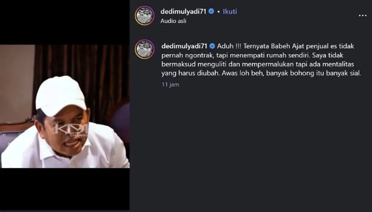 Dalam unggahan tersebut, Dedi Mulyadi mengawali perbincangan dengan menanyakan aktivitas Sudrajat yang sudah beberapa hari tidak berjualan.