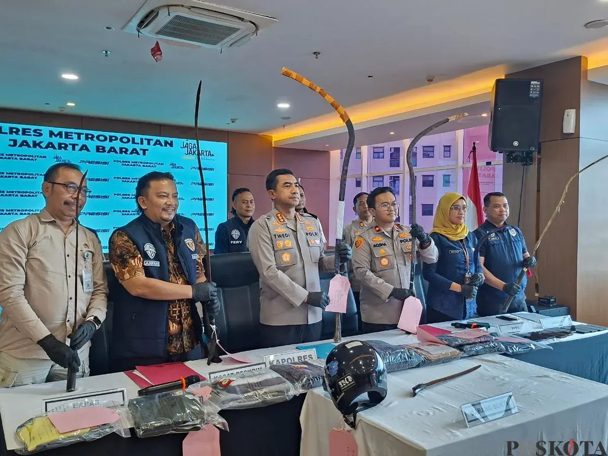 Polres Metro Jakarta Barat gelar konpers kasus tawuran antar remaja yang menyebabkan satu orang tewas, Jumat, 30 Januari 2026. (Sumber: Poskota/Pandi Ramedhan)