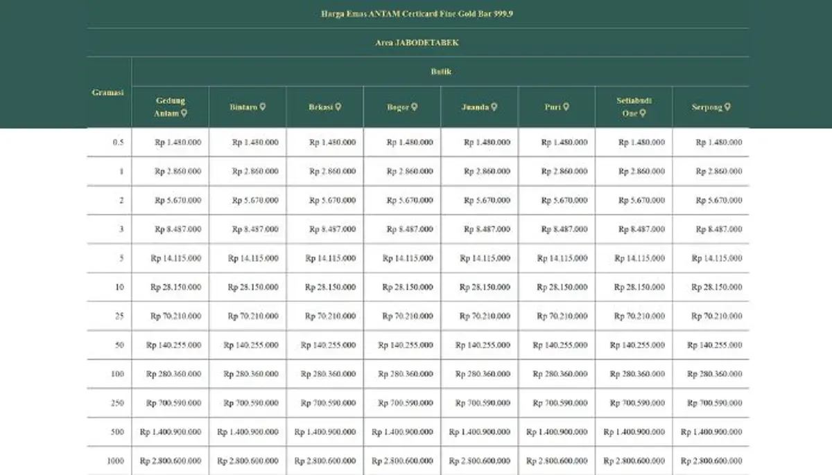 - Emas Antam 1.000 gram: Rp2.800.600.000