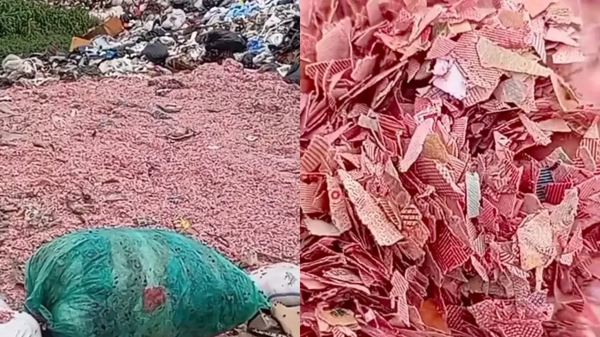 Viral temuan potongan kertas mirip cacahan uang di TPS liar Bekasi. (Sumber: tangkapan layar)