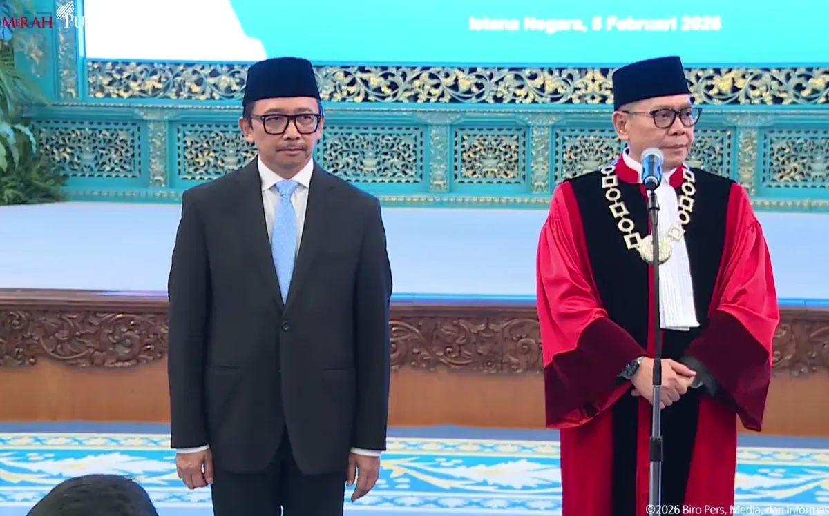 POSKOTA.CO.ID - Presiden Republik Indonesia Prabowo Subianto secara resmi melantik Adies Kadir sebagai Hakim Mahkamah Konstitusi (MK) dan Juda Agung sebagai Wakil Menteri Keuangan (Wamenkeu) dalam sebuah upacara kenegaraan di Istana Negara, Jakarta, Kamis, 5 Februari 2026.