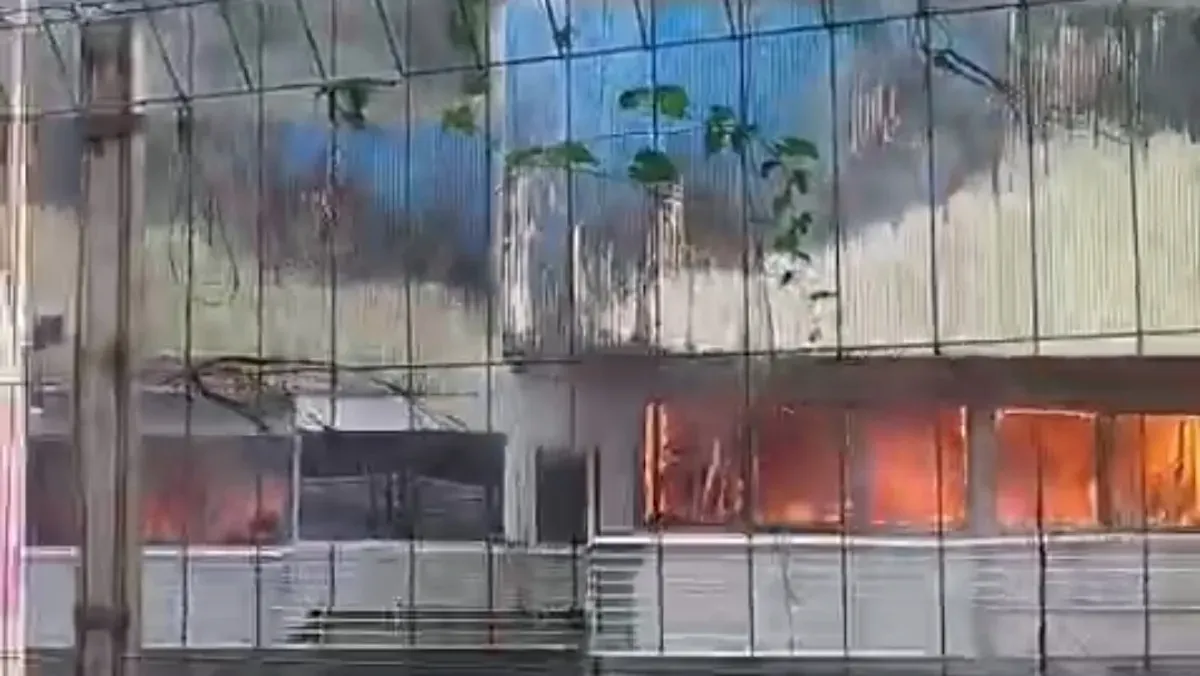Berdasarkan video yang diperoleh pihak redaksi, api merah menyala melalap area bangunan.