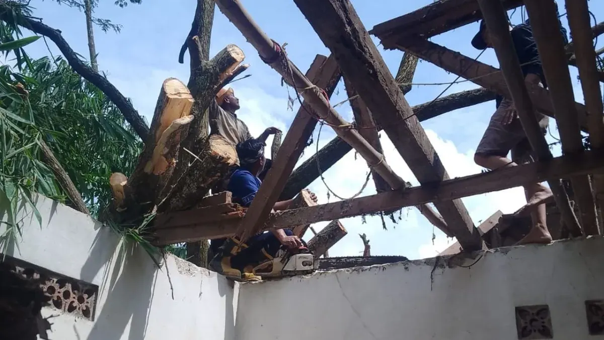 "Kemarin sudah ada dari pihak kecamatan dan BPBD membantu melakukan evakuasi puing dan dahan pohon. Sekarang kami warga yang berbohong royong membantu melakukan perbaikan agar rumah ini cepat bisa dihuni lagi," ucapnya.
