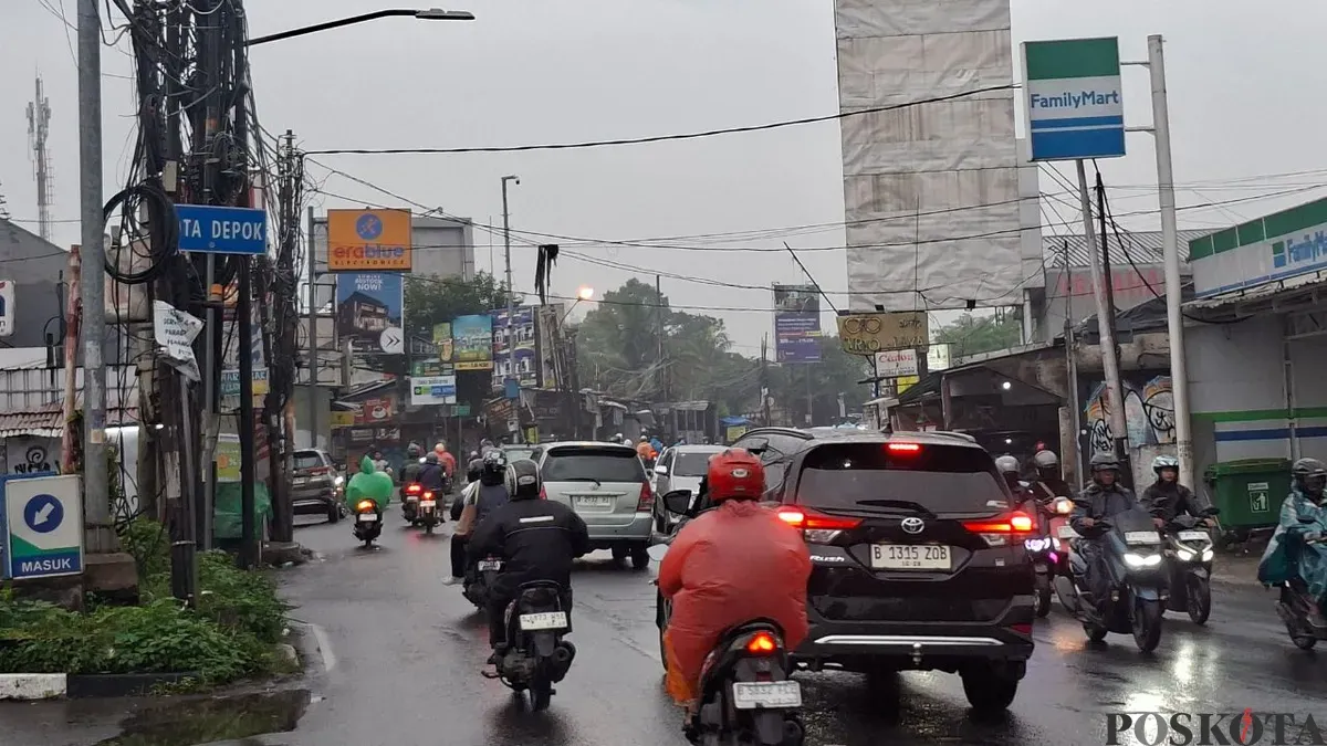 Kanit Lantas Polsek Bojongsari, Iptu Suwardi mengatakan, hujan menimbulkan genangan air yang menghambat arus lalu lintas.
