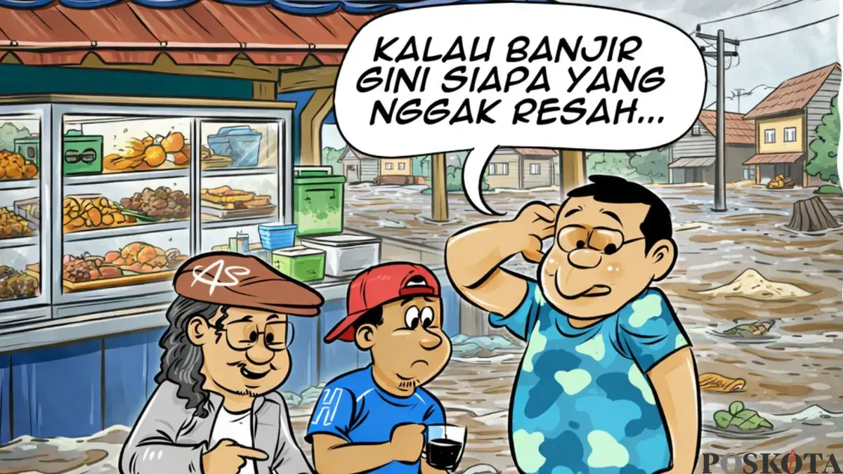 Obrolan warteg tentang banjir, Senin, 8 Februari 2026. (Sumber: Poskota/Arif Setiadi)