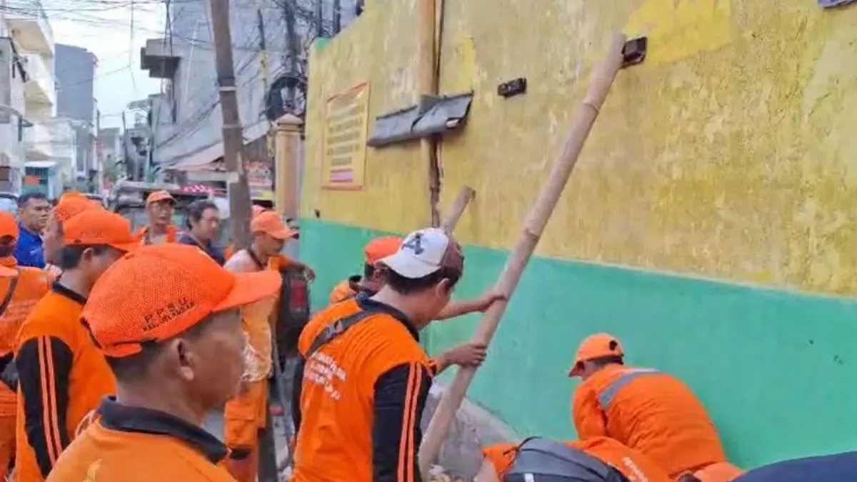 "Tadi PPSU tindakannya adalah sementara pakai kayu dulu, disanggah gitu pakai kayu," ujarnya.