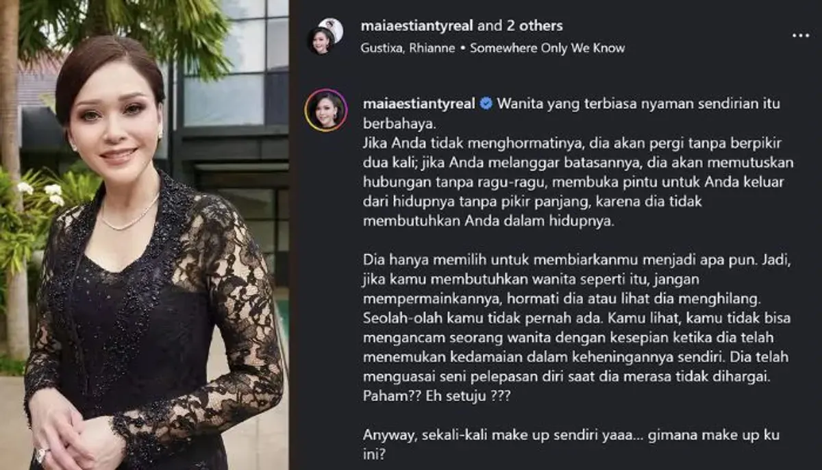 POSKOTA.CO.ID - Postingan terbaru Maia Estianty menjadi sorotan publik setelah ia membagikan sebuah caption unggahan Instagram yang dinilai cukup dalam dan penuh makna.