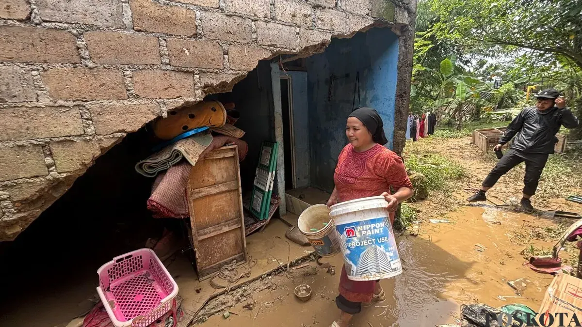 Rumah warga di Kampung Cicerewed, Bogor, rusak berat akibat banjir bandang yang terjadi pada Rabu sore, 11 Februari 2026. (Sumber: Poskota/Giffar Rivana)