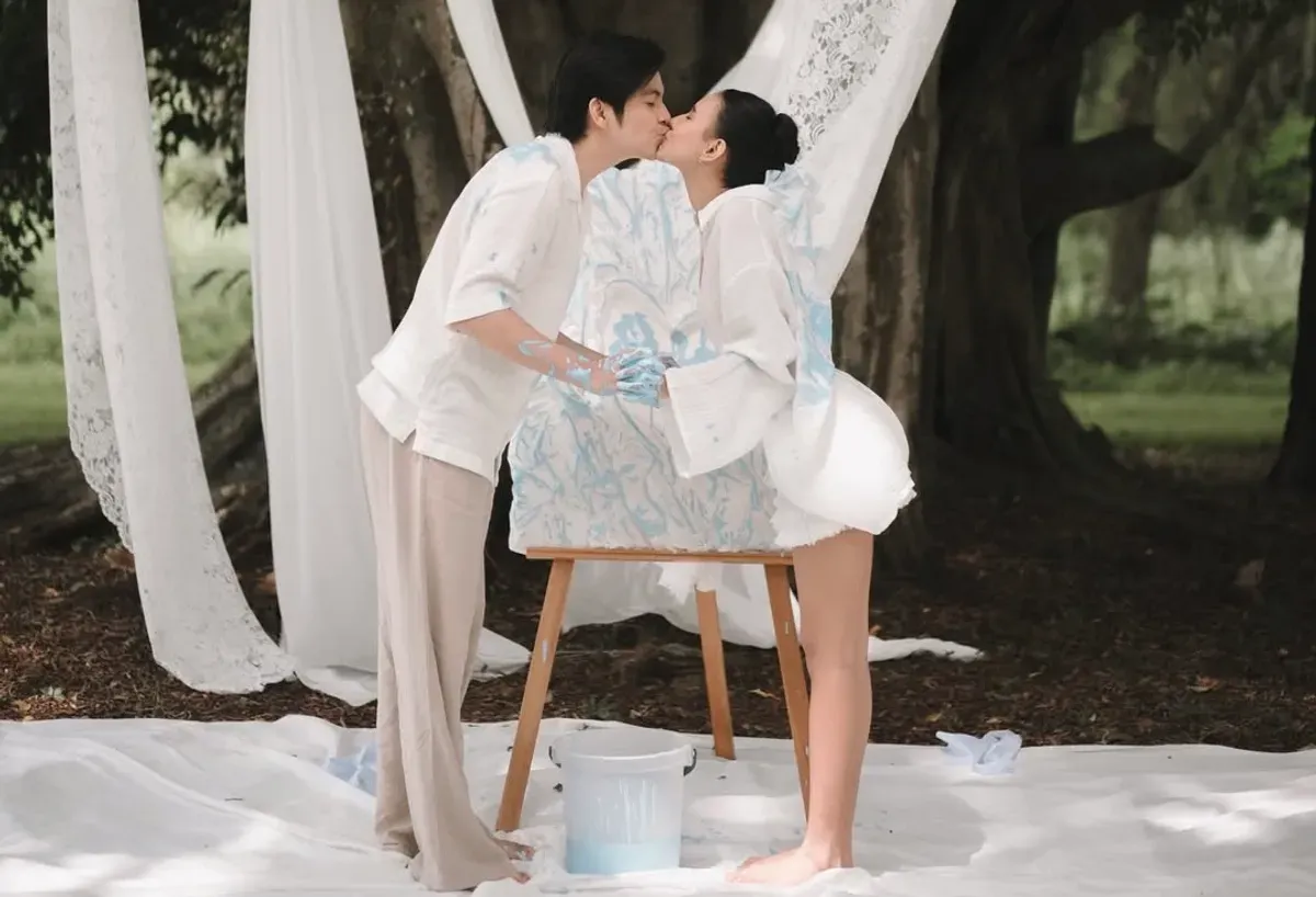 Pengumuman itu dibagikan Angga sambil mengunggah potret gender reveal yang hanya dilakukan berdua oleh mereka.