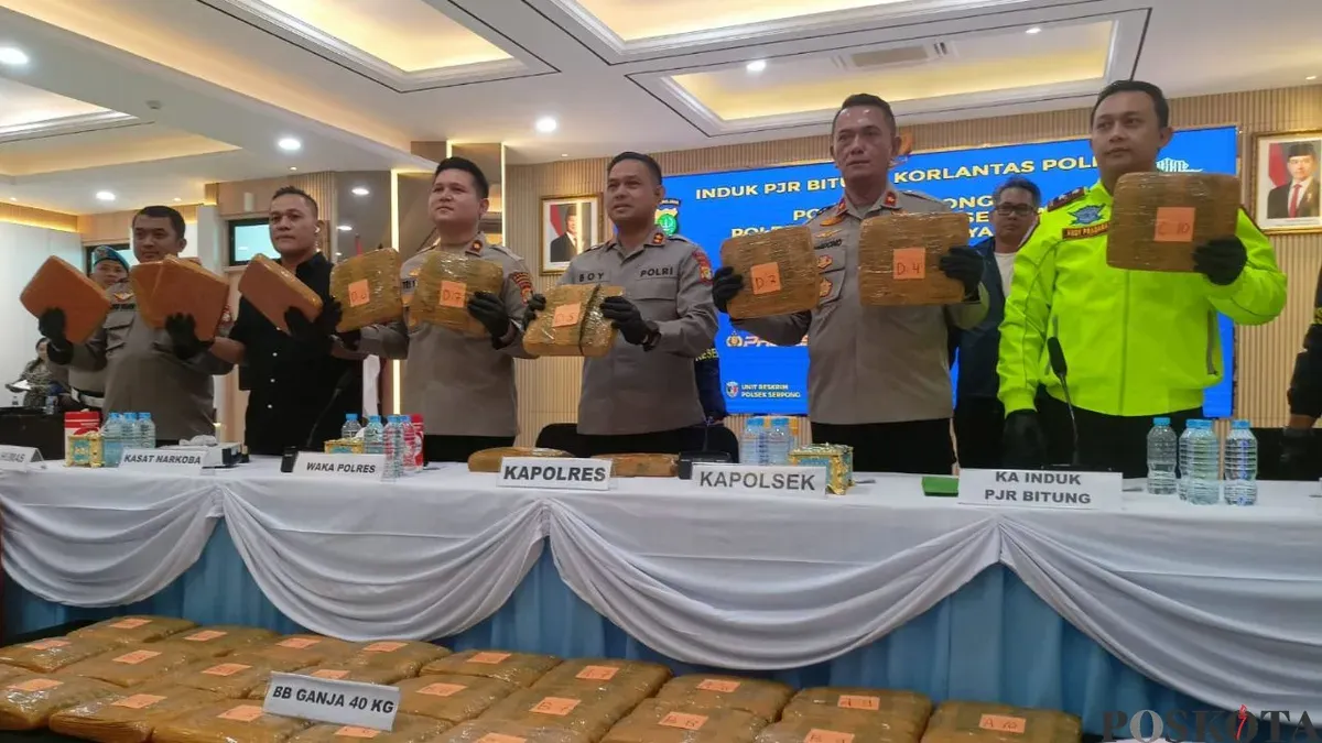 Jumpa pers pengungkapan ganja 40 kg di Mapolres Tangerang Selatan, Rabu, 18 Februari 2026. (Sumber: Poskota/Veronica Prasetio)