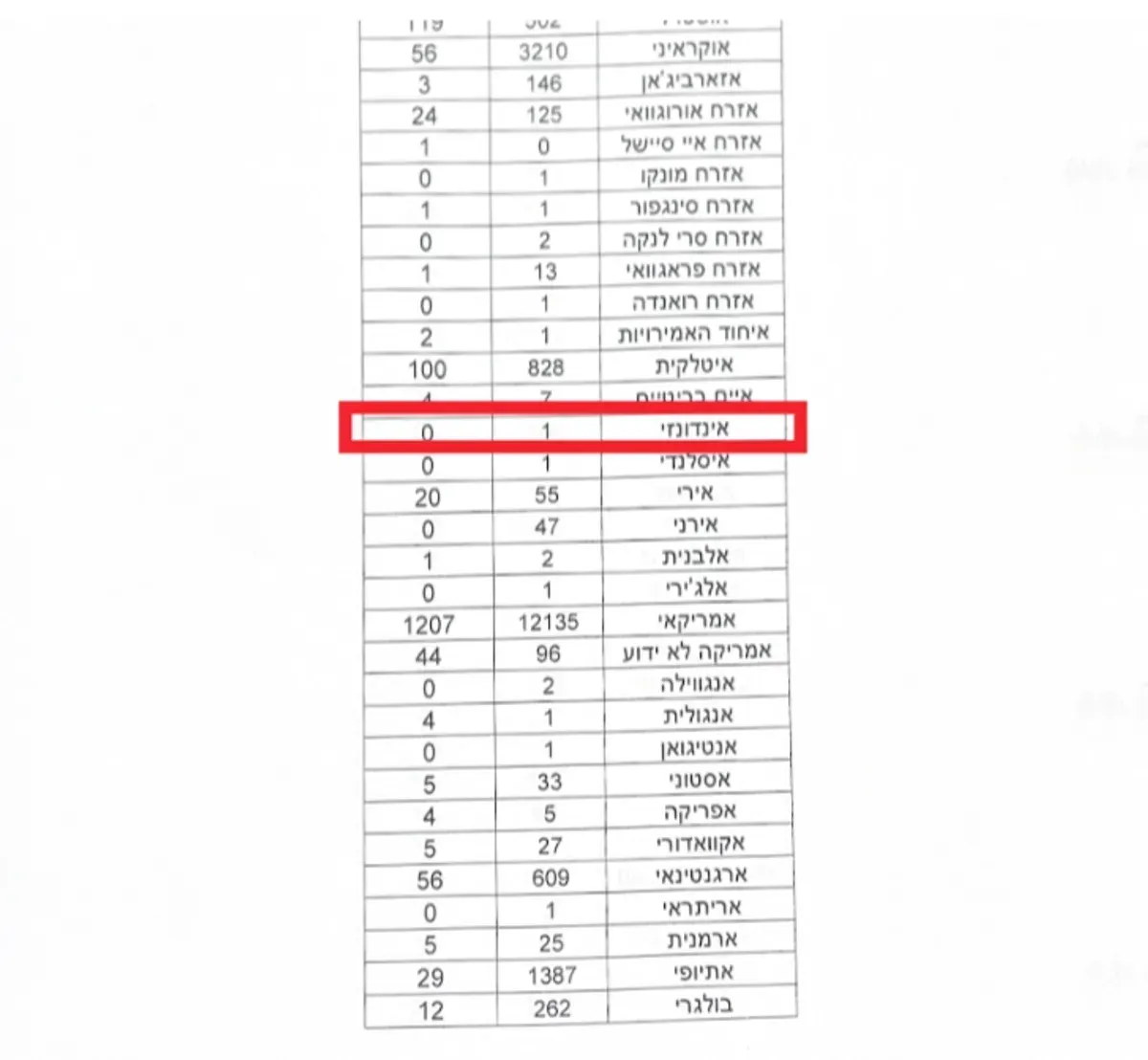 Data tersebut berisi jumlah orang dengan kewarganegaraan ganda yang merupakan anggota IDF pada Maret 2025.