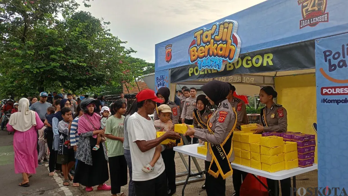 CIBINONG, POSKOTA.CO.ID - Polres Bogor melakukan membagikan takjil gratis di Jalan Sudirman, kawasan Pakansari, Kecamatan Cibinong, Kabupaten Bogor, pada Kamis. 19 Februari 2026.
