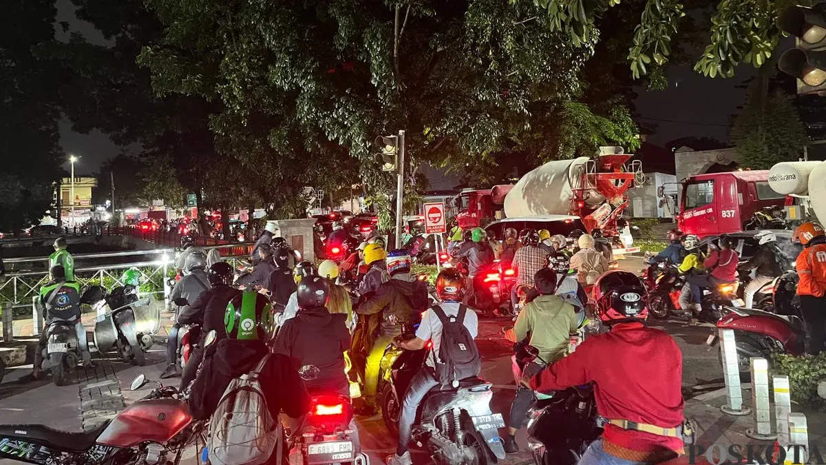 KEMBANGAN, POSKOTA.CO.ID - Lalu lintas di depan Kantor Pemerintah Kota (Pemkot) Jakarta Barat macet total pada Jumat, 20 Februari 2026 malam.