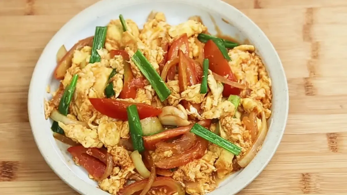 Menurut penjelasan Devina Hermawan, telur tomat merupakan hidangan asal Tiongkok berupa telur orak ark atau scrambled egg yang dipadukan dengan tomat segar.