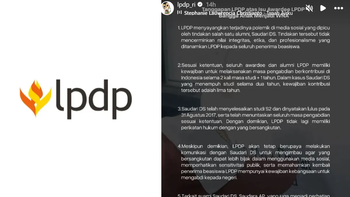 Dalam pernyataannya di instagram stories @lpdp_ri, LPDP menyayangkan tindakan DS yang dianggap tidak mencerminkan nilai integritas, etika, dan profesionalisme yang selama ini ditanamkan kepada seluruh awardee.