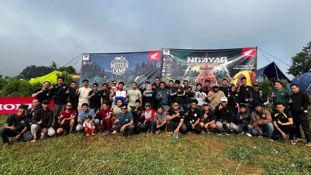 Melalui agenda Honda Bikers Fun Motour Camp 2026 yang dirangkaikan dengan Ngamping Bareng Paguyuban (NGAYAB) Babak V, puluhan anggota komunitas berkumpul di Sarang Semut Camp, Kabupaten Bogor, pada 14–15 Februari 2026.
