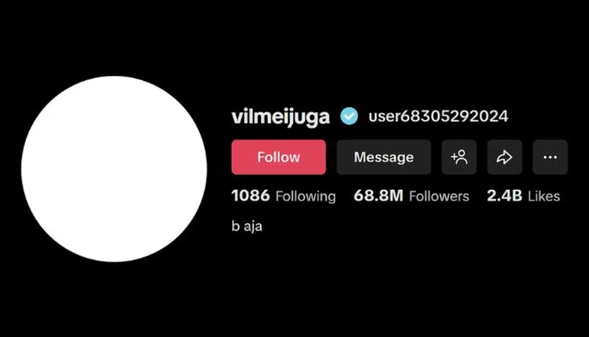 Sebagai informasi, akun tersebut memiliki 68,8 juta pengikut dengan total 2,4 miliar tanda suka yang dikumpulkan selama sekitar lima tahun. Jumlah tersebut menunjukkan besarnya pengaruh Vilmei sebagai kreator konten di platform video pendek tersebut.