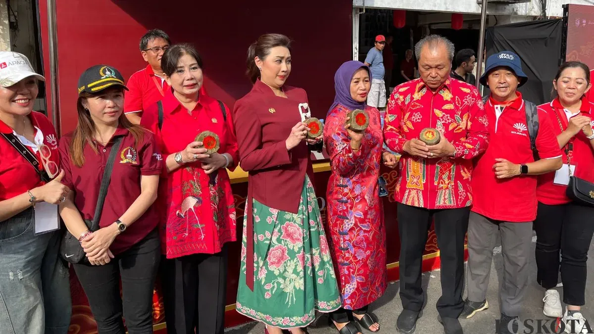 Sementara itu, Wali Kota Jakbar, Iin Mutmainnah ikut meramaikan Cap Go Meh. Ia membeli produk dari salah sebuah gerai UMKM penjual makanan.