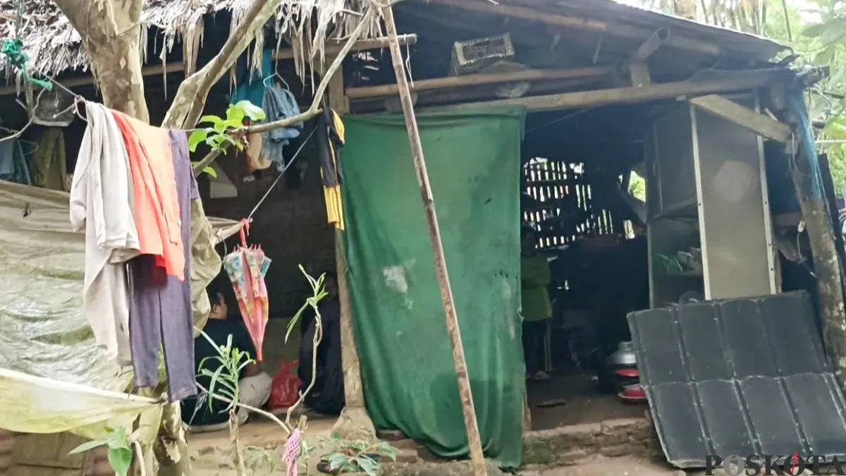 PANDEGLANG, POSKOTA.CO.ID - Salah satu keluarga Kampung Saketi Lebak Pasar, Desa Kadudampit, Kecamatan Saketi, Kabupaten Pandeglang, terpaksa harus tinggal di gubuk reyot dengan kondisi keterbatasan ekonomi.