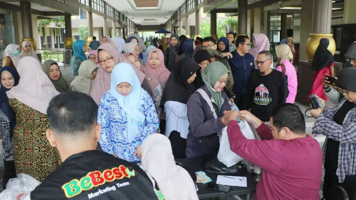 Gerakan pangan murah digelar di Pusat Pemerintahan Kabupaten atau Puspemkab Serang Kecamatan Ciruas, Kamis, 5 Maret 2026.