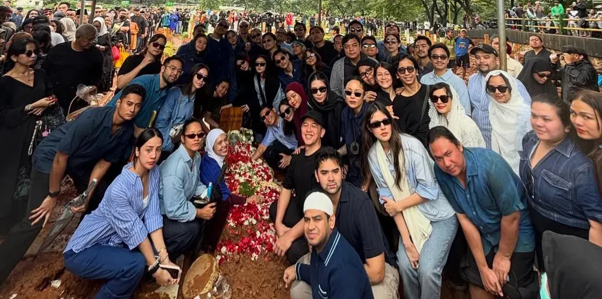 Sejumlah pelayat, termasuk istri almarhum, Sheila Dara Aisha, serta para sahabat dekat Vidi Aldiano terlihat kompak mengenakan pakaian berwarna biru saat menghadiri prosesi pemakaman.