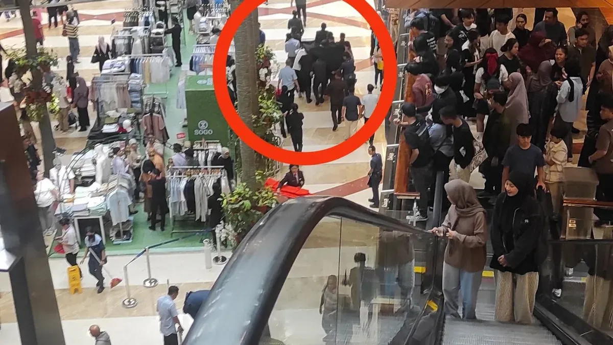 Insiden tersebut terjadi sekitar pukul 13.03 WIB dan sempat membuat pengunjung mal panik.
