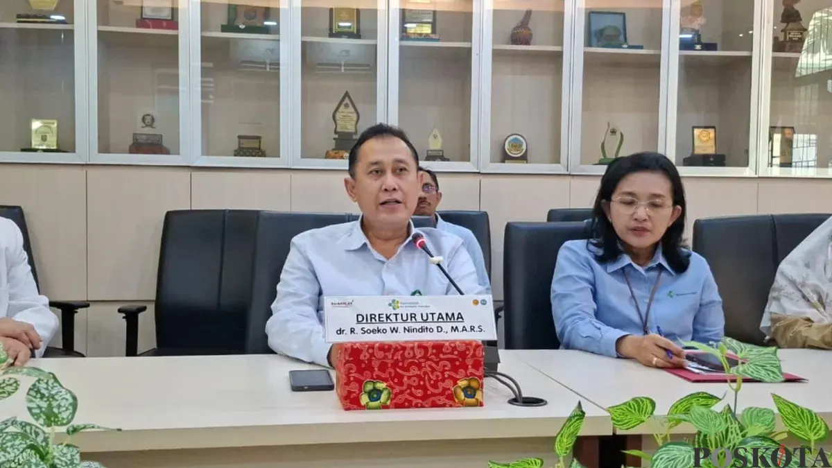 Konferensi pers RSHH perihal viralnya video seorang wanita yang diduga dimasukkan secara paksa ke Poli Jiwa oleh suaminya sendiri, Senin, 9 Maret 2026. (Sumber: Poskota/Pandi Ramedhan)