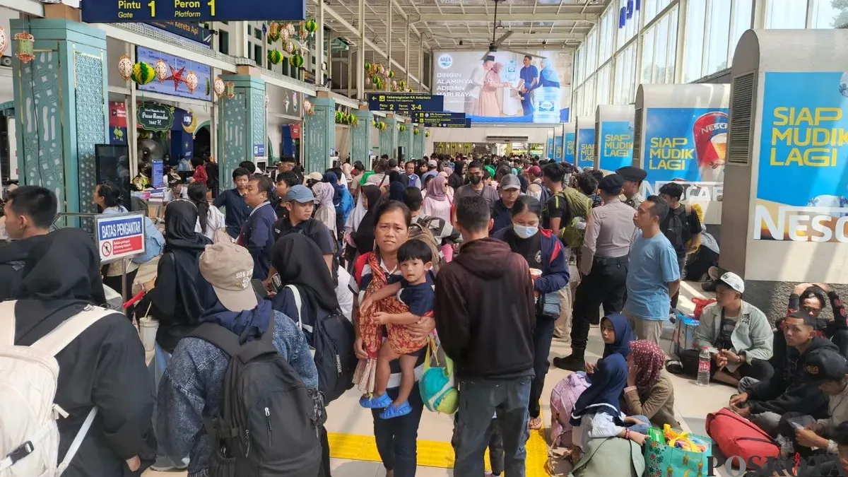 Suasana Stasiun Pasar Senen, Jakarta Pusat, Sabtu, 14 Maret 2026. (Sumber: Poskota/Ali Mansur)