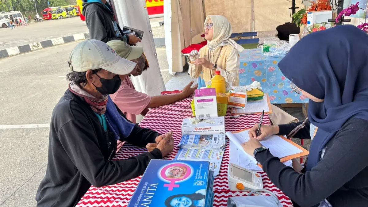Petugas juga memberikan layanan kesehatan sederhana bagi para pemudik, seperti pemeriksaan tekanan darah, gula darah, dan asam urat, serta pemberian vitamin untuk membantu menjaga kondisi tubuh selama perjalanan.