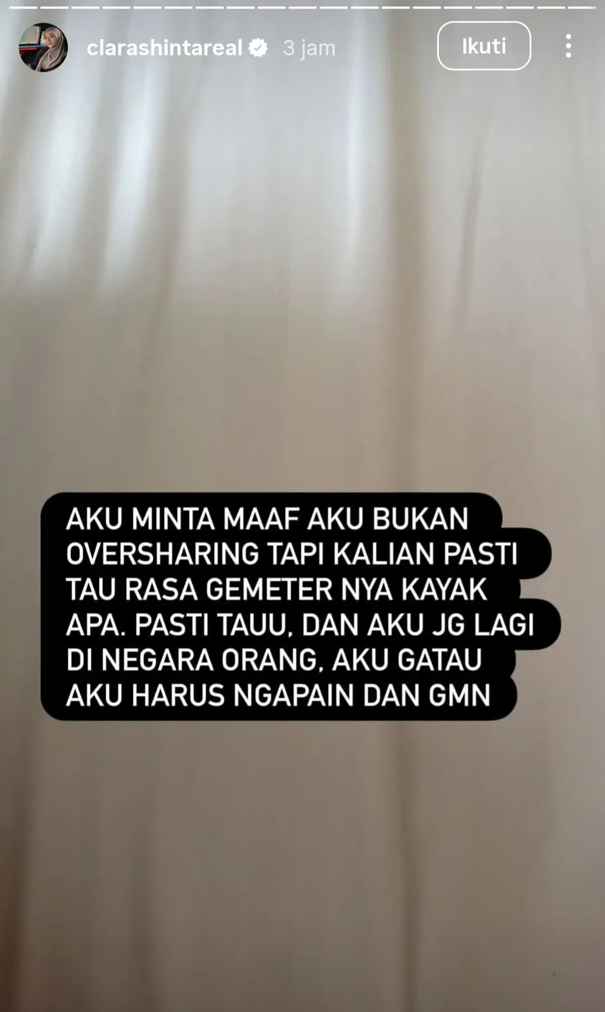 Melalui sejumlah unggahan di Instagram Story nya pada Senin, 30 Maret 2026 pagi hari, Clara Shinta sempat memposting bukti dugaan perselingkuhan sang suami.