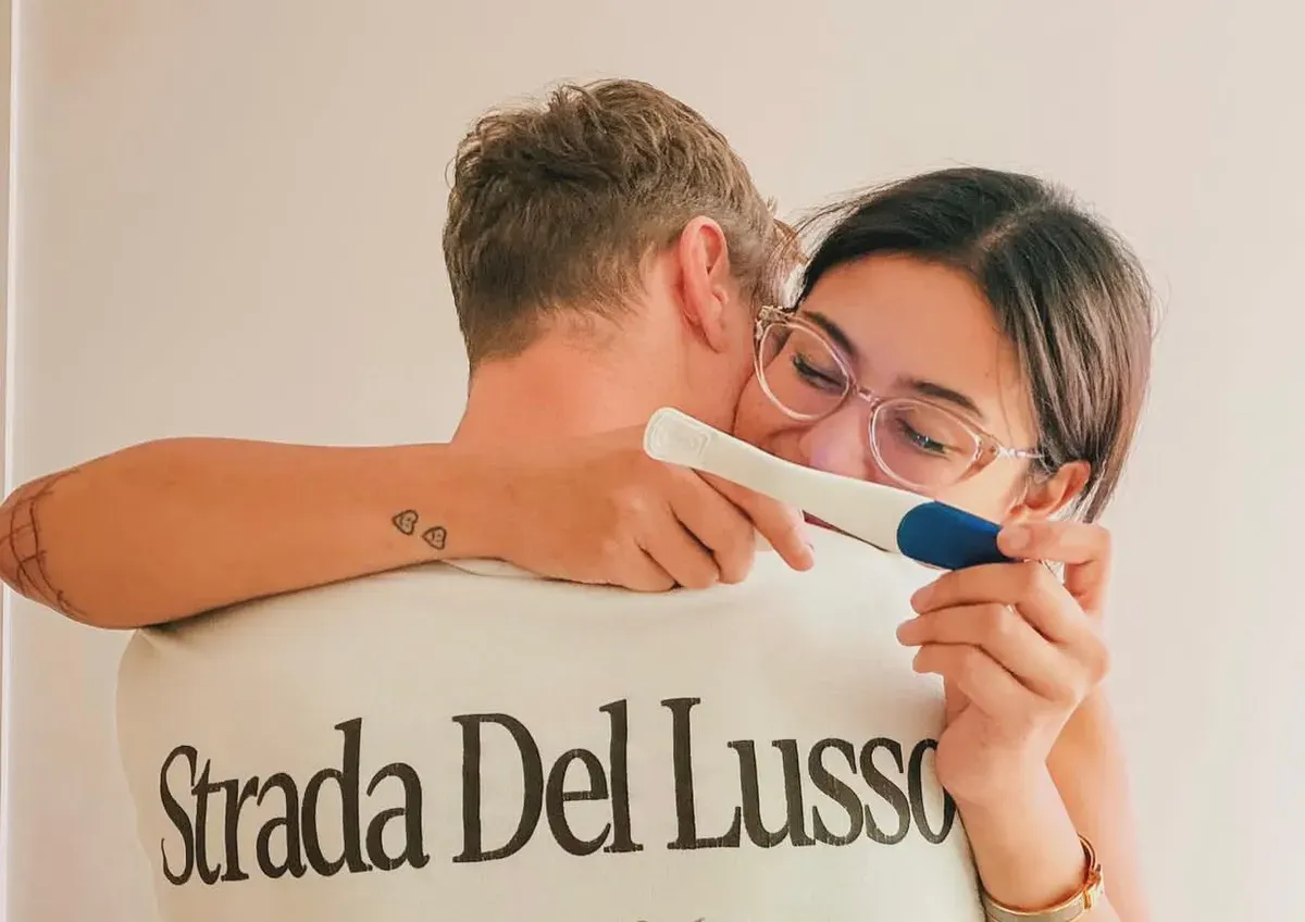 Melalui Instagram story eksklusifnya @narinkovilda, ia sempat mengunggah sebuah foto memeluk kekasih pria bulenya sambil memegang test pack.