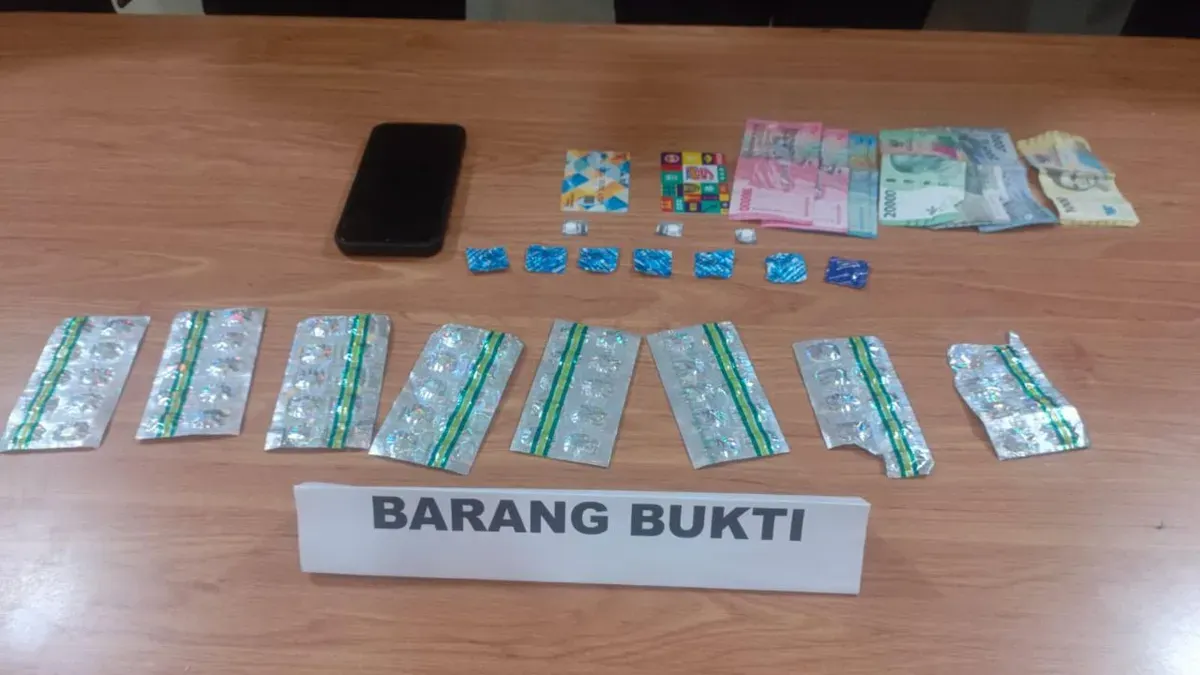 Dari hasil pemeriksaan, polisi menemukan sejumlah barang bukti berupa satu unit handphone serta puluhan butir obat-obatan terlarang.