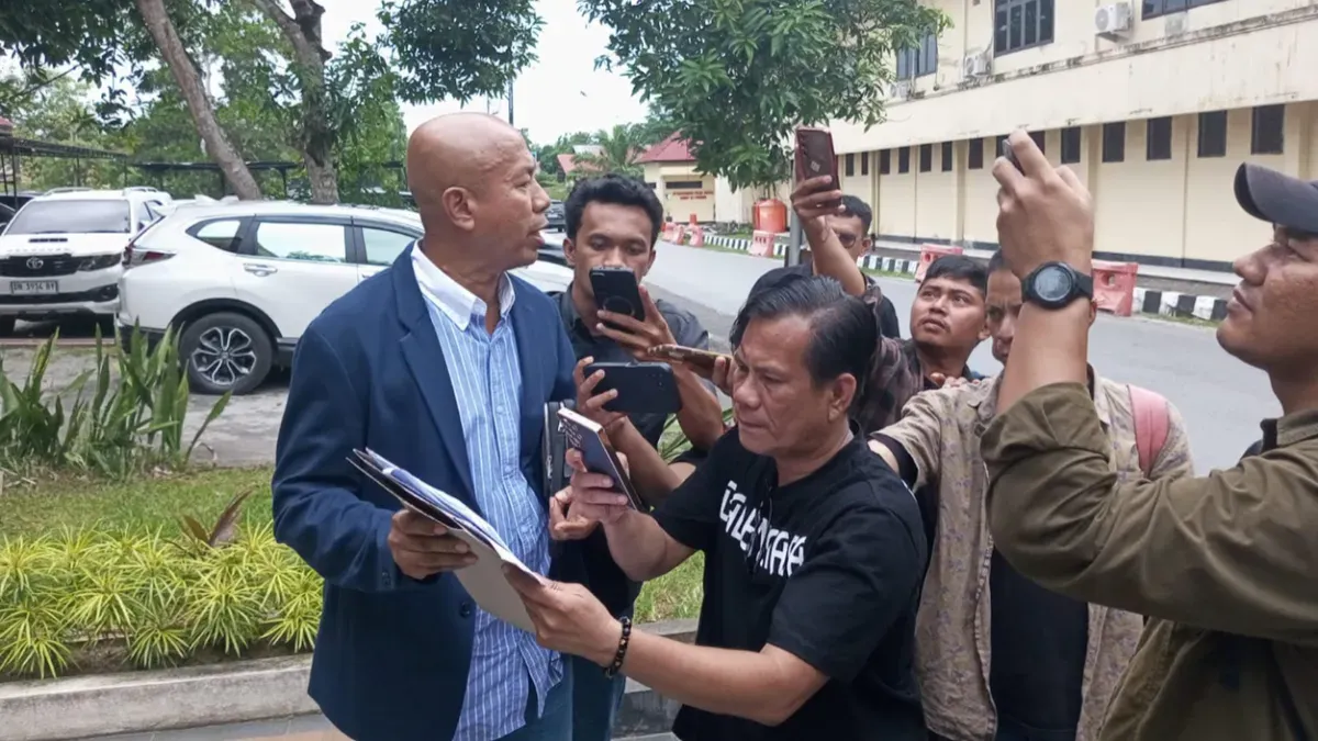 Kuasa hukum PT GAN saat memberikan keterangan kepada awak media di Polda Sultra. (Sumber: Istimewa)