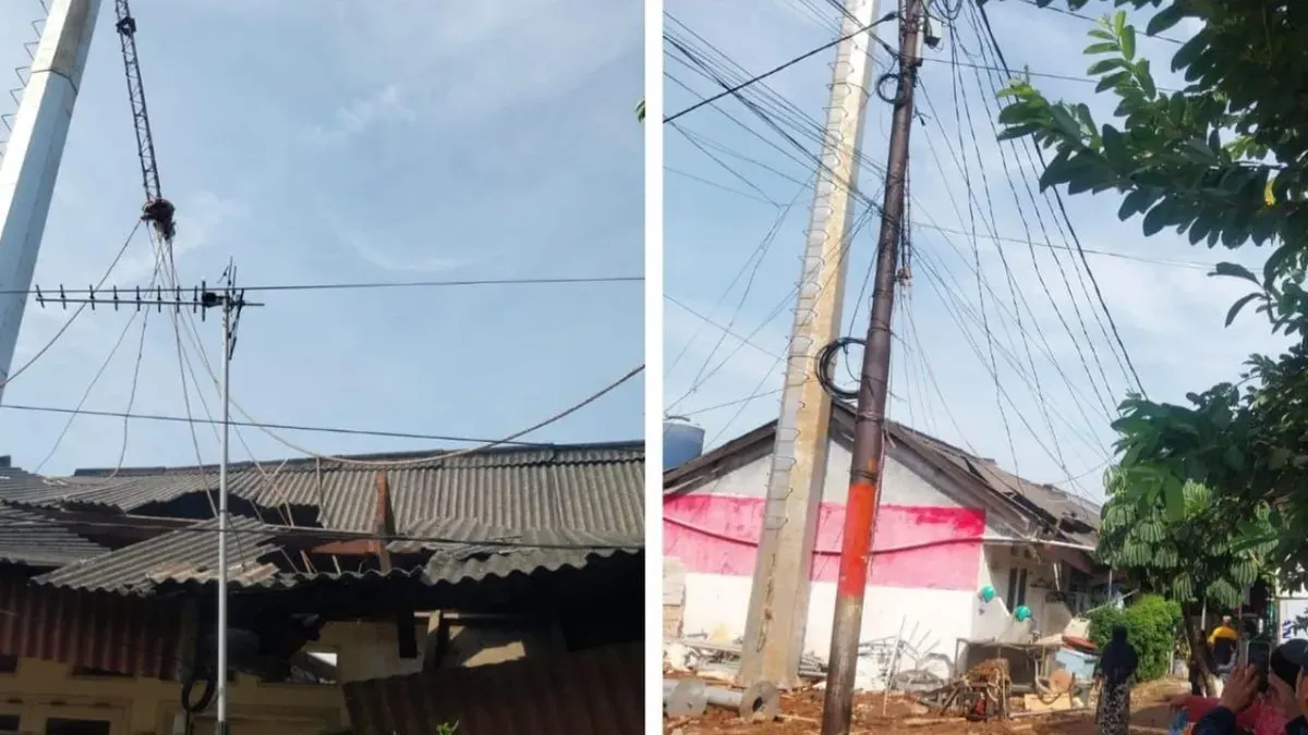Akibatnya tiang provider roboh dan menimpa dua rumah kontrakan di kawasan tersebut. Kejadian itu juga membuat satu warga bernama Ahmad, 53 tahun, luka ringan.