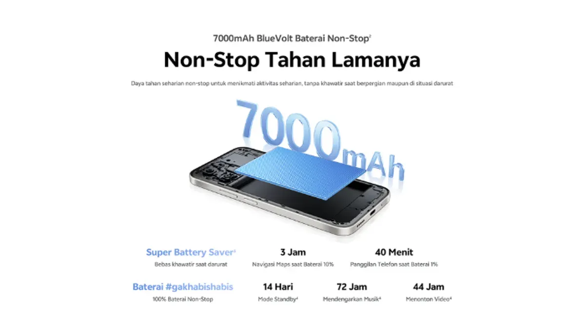 Keunggulan lain yang ditawarkan adalah kapasitas baterai jumbo 7000mAh. Vivo mengklaim baterai ini mampu digunakan untuk navigasi maps hingga 162 menit hanya dengan sisa daya 10 persen.