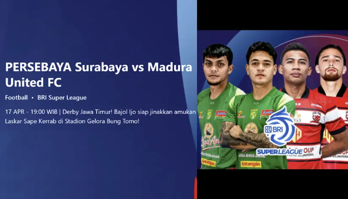 POSKOTA.CO.ID - Pertandingan seru akan tersaji dalam lanjutan Super League 2025/2026 saat Persebaya Surabaya menghadapi Madura United. Laga ini dijadwalkan berlangsung di Stadion Gelora Bung Tomo pada Jumat, 17 April 2026 pukul 19.00 WIB.