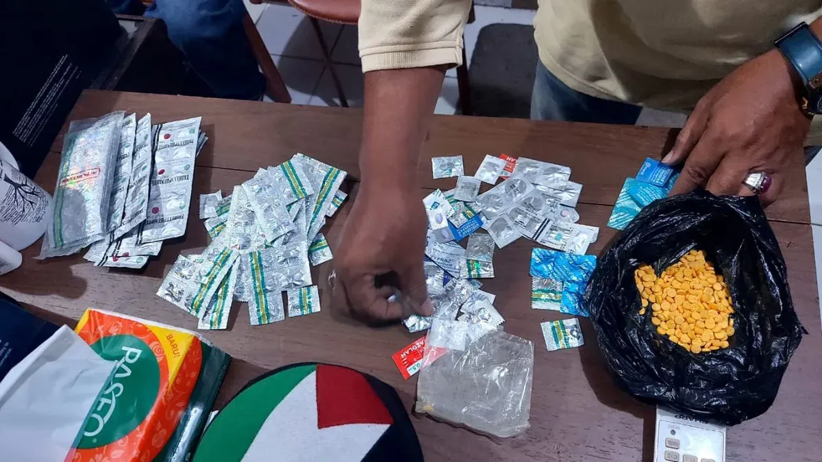 Selain pelaku, petugas juga menyita ratusan butir obat terlarang berbagai jenis, seperti tramadol, trihexyphenidyl, dan eximer, dengan total mencapai 592 butir.