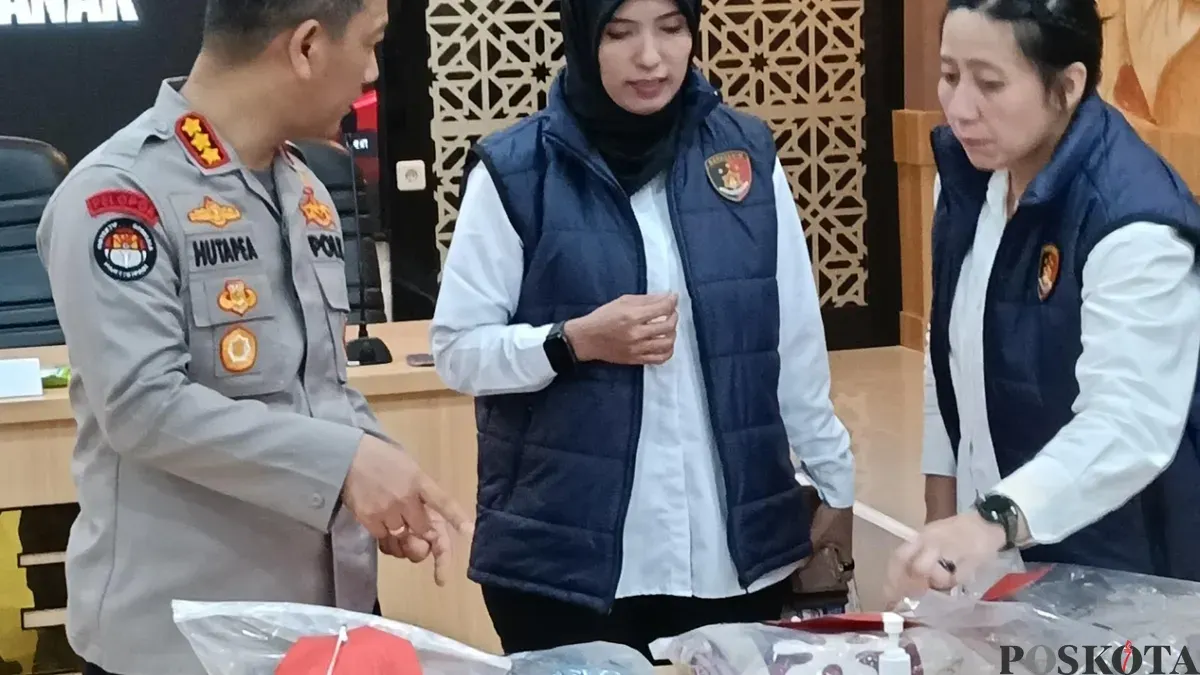 Kasubdit Renakta AKBP Irene Missy (kanan) menunjukkan barang bukti aborsi dalam kasus kekerasan seksual. (Sumber: Poskota/Rahmat Haryono)