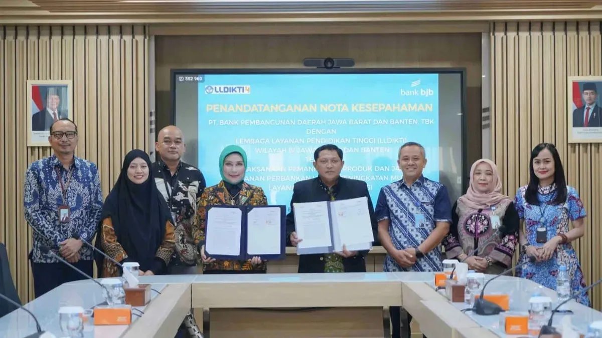 Penandatanganan dilakukan oleh Direktur Konsumer & Ritel bank bjb Nunung Suhartini bersama Kepala LLDIKTI Wilayah IV Dr. Lukman, S.T., M.Hum. Kegiatan ini turut dihadiri jajaran manajemen bank bjb dan LLDIKTI Wilayah IV sebagai bentuk dukungan terhadap kolaborasi yang dibangun.