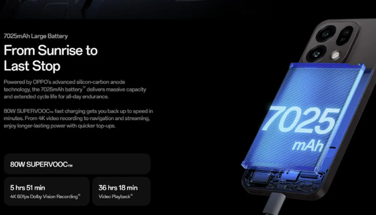 Salah satu keunggulan paling mencolok dari Oppo Find X9s Pro adalah kapasitas baterainya yang mencapai 7.025 mAh. Kapasitas ini jauh melampaui rata-rata smartphone flagship saat ini, sehingga memungkinkan penggunaan seharian penuh tanpa sering mengisi daya.